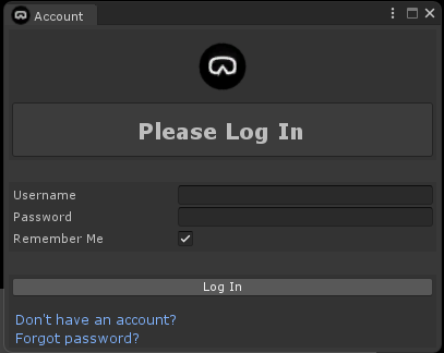 1. Select the "REACH Explorer" tab from Unity. And navigate to "Windows > Account".